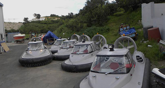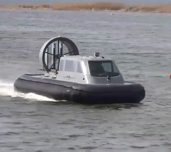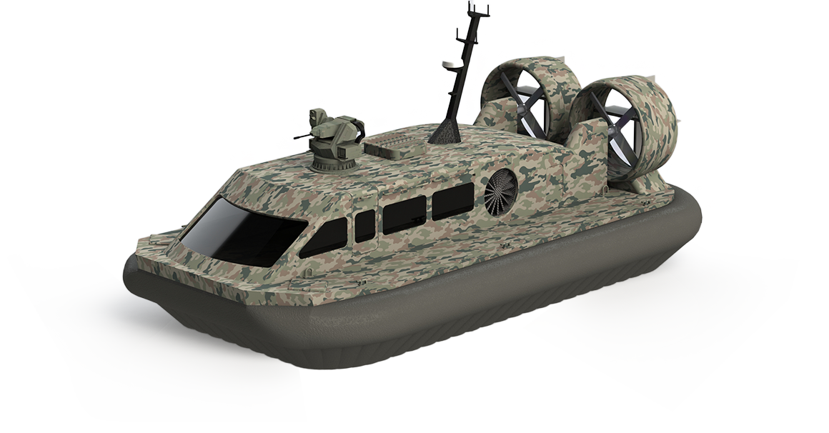 케이마린에서 직접 설계하고 생산되는 공기부양정은 선체에서 공기를 아래쪽으로 분사하여 선체가 수면위로 부양한 상태에서 항주하는 수륙양용 선박입니다.